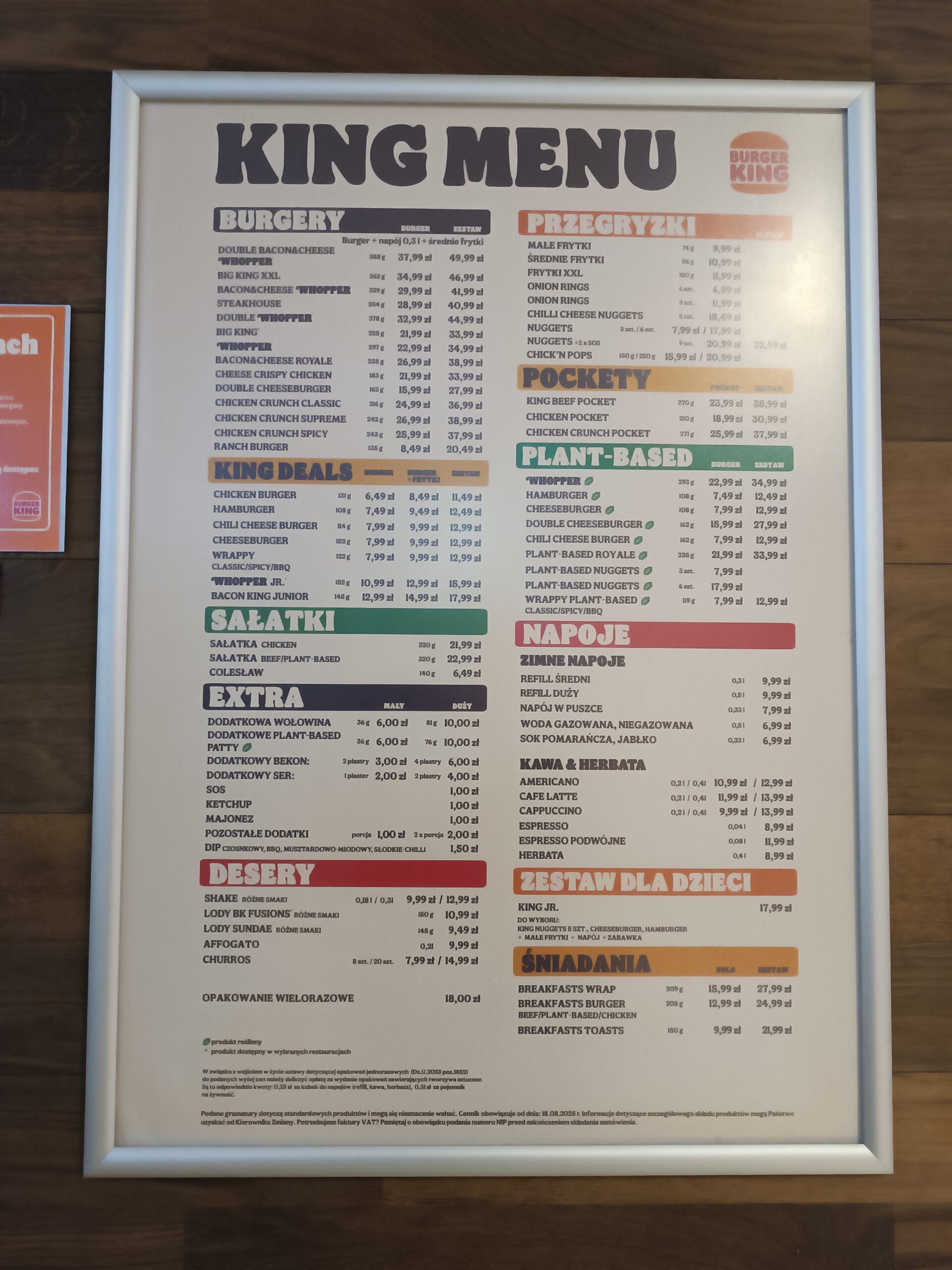 Poniżej wrzucam historyczne ceny z restauracji Burger King z dania 03.12.2025 wraz ze zdjęciem cennika. Zdjęcie menu zrobione najprawdopodobniej w restauracji w Poznaniu, przy ulicy