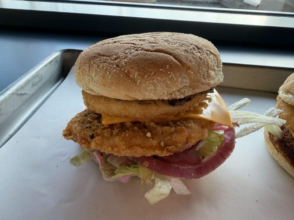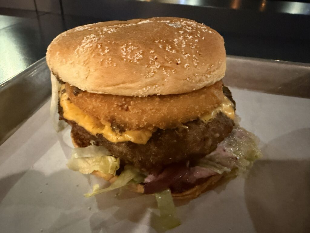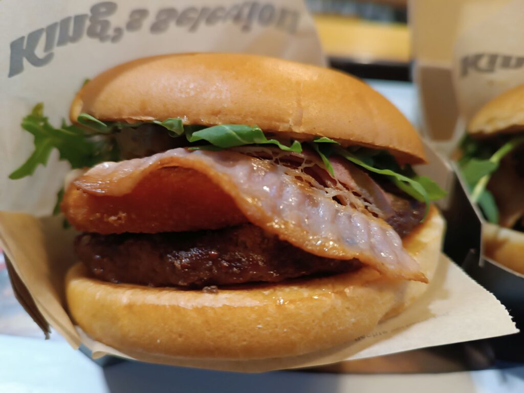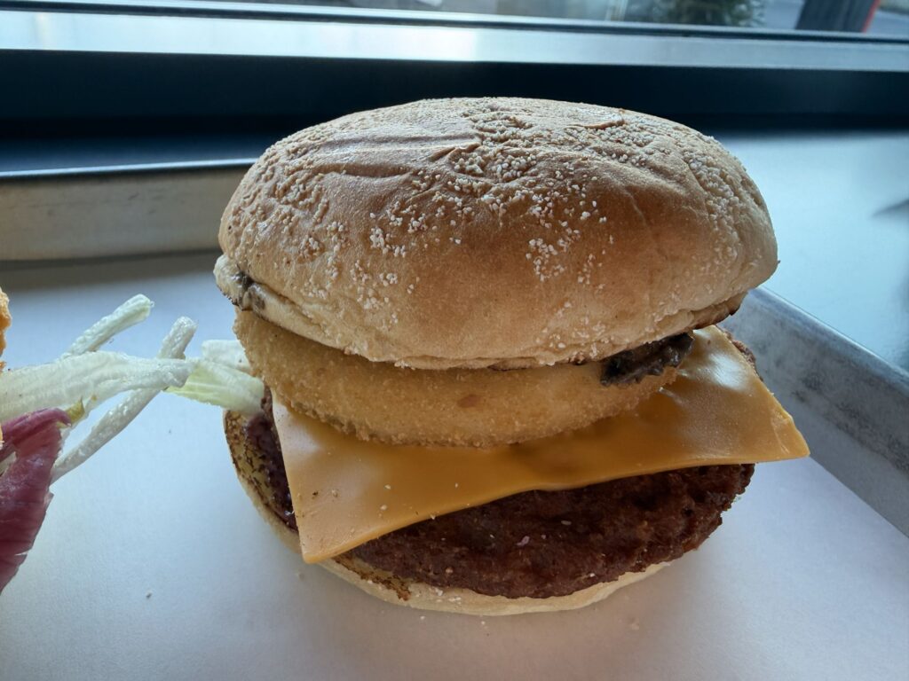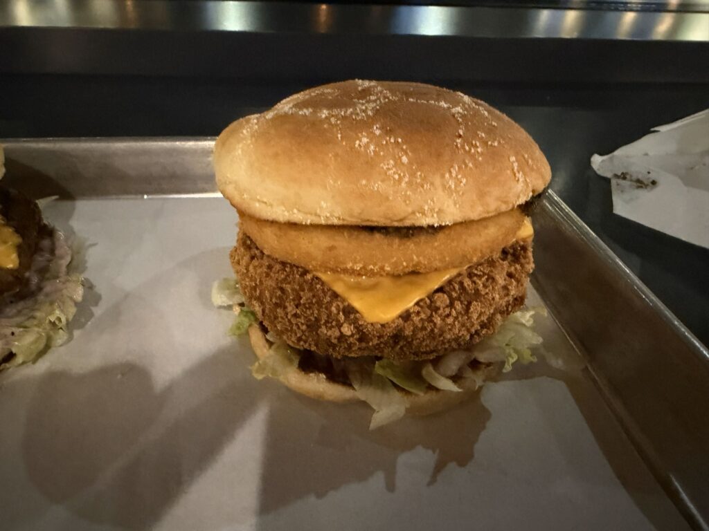 Moim zdaniem najgorsza kanapka w całym zestawieniu. Max Burgers nie potrafi robić ani wołowiny ani jej roślinnego odpowiednika dobrze. Dla mnie ten kotlet był całkowicie niezjadliwy i jeśli jesteś wege to wybierz wersję z roślinnym kurczakiem.
