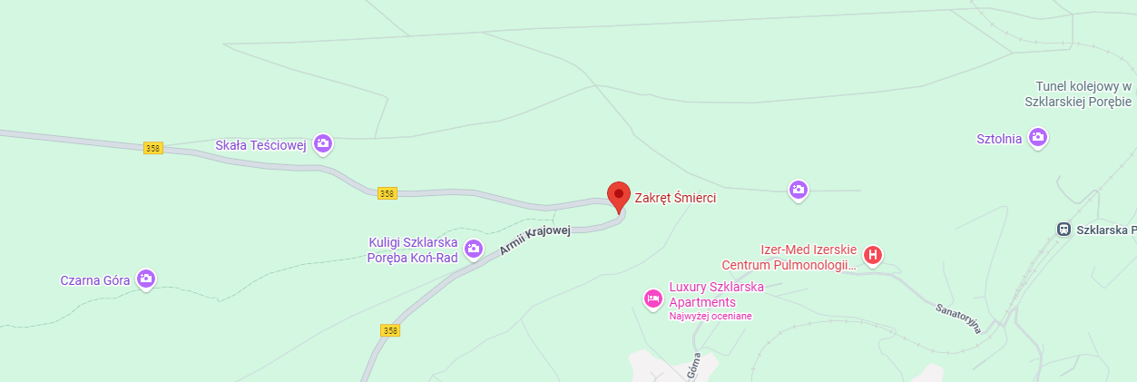 Zakręt Śmierci to jedno z tych miejsc, które niemal każdy polecał mi, słysząc, że wybieram się w okolice Szklarskiej Poręby. Szczególnie mój znajomy Zachary. Jest to jeden z najpiękniejszych punktów widokowych na Karkonosze i Kotlinę Jeleniogórską, a jednocześnie jedno z najlepszych miejsc do filmowania dronem. Zakręt Śmierci znajduje się na Drodze Sudeckiej (DW 358), między Szklarską Porębą a Świeradowem-Zdrojem, około 3 km od centrum Szklarskiej Poręby. Troszkę dalej znajduje się Karpacz. Położony jest na wysokości ok. 775 m n.p.m., w Górach Izerskich.